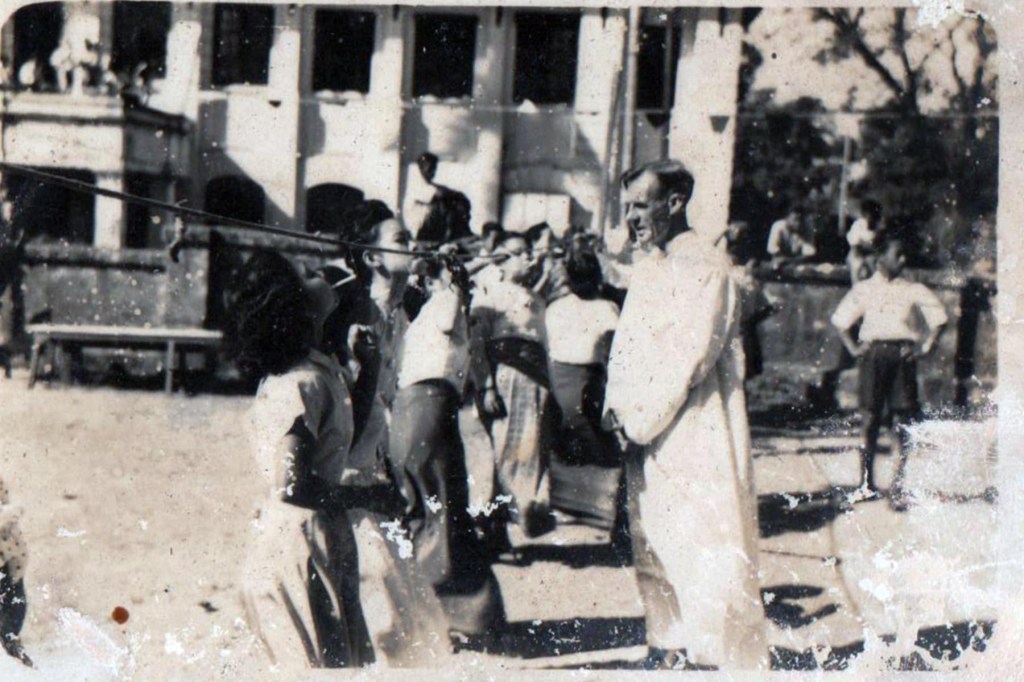 U Wynn Htain Oo (M72) remembers how his friends were having fun with the “Ye Punn ရေပန်း” (Water Foundation). Saya saw them, but did not scold them. He said with a smile, “Young men, you can go to the University Swimming Pool or to the Inya Kan ကန် (Lake)”.