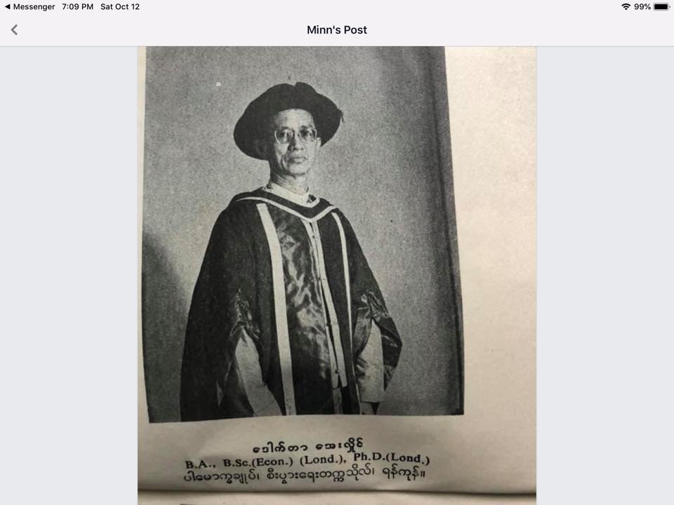 Dr. Tin Win (Alan, Chemistry)Dr. Aung Myint (Chemistry)Dr. Aung Than (Dental)Dr. Aye Hlaing (Institute of Economics) Dr. Ba Han (Law, Lexicographer)Dr. F Ba Hli (UBARI)Dr. Freddie Ba Hli (National Planning Advisor)Dr. Ba Than (IM 1, Zwe Ah Nyeint, Footballer)Dr. Chit Swe (Pioneer of Computer Education and Application in Burma)Dr. Daw Yi Yi (Botany)Dr. Hla PhayDr. Htin Aung (Vice Chancellor, Rector, Author) Dr. Khin Maung Nyo (Chemistry)Dr. Khin Maung Nyunt (History)Dr. Ko Ko Gyi (Zoology)Dr. Kyaw Sein (M65)Dr. Maung Maung Gyi (Mandalay IM)Dr. Maung Maung Kha (RU)Dr. Mya Than (Institute of Economics)Dr. Myint Tun (Henry, Chemistry)Dr. Nyi Nyi (Deputy Minister)Dr. San Tint (Electrical)Dr. Saw Wai Hla (Physics)Dr. Soe Myint Win, Dr. Aye Thein Kyaw (Physics)Dr. Soe Myint WinDr. Soe Win (YUFL)Dr. Soe Aung and Daw May Saw Lwin Dr. Than Tun (History) Dr. Thein Aung (Chemistry(Dr. Tin Aung (Physics)Dr. U E (IM 2)Dr. Win Naing (Physics)Dr. Zin Aung (Physics, Assumption University)