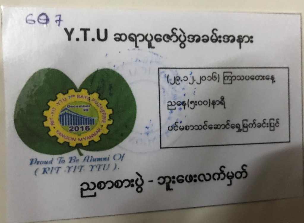 Thanks go to Saya Dr. Aye Myint (former Rector of YTU) and Saya Dr. Myint Thein (current Rector of YTU) for the activities held at our beloved alma mater.