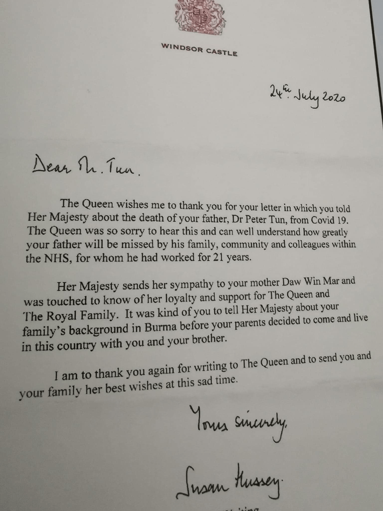 When Peter passed away untimely as an early victim of Covid in April 2020, his son Ye Lay wrote a letter to the Queen.