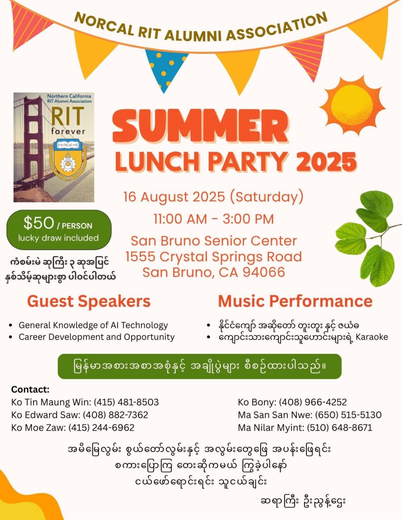 Published “Shwe (Golden) Padauk” Magazine in the San Francisco Bay Area. It was a bi-lingual (Burmese and English) magazine.